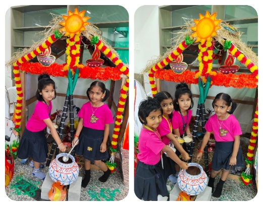 This was followed by the Thirukkural, Thought of the Day, Proverb, and other regular segments, all beautifully aligned with the Pongal theme, highlighting values of gratitude, unity, and respect for nature. The special talents segment showcased students' creativity and confidence through a thematic poem, a melodious song, and a vibrant dance performance, which vividly portrayed the joy and traditions of Pongal.