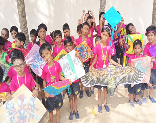 - Children enthusiastically enjoyed flying kites with their peer groups.